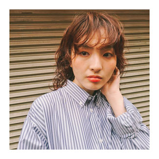 仕上げはストレートアイロンで根本〜中間を波巻きに、ジェルワックスとクリームを混ぜて毛先に付けました。